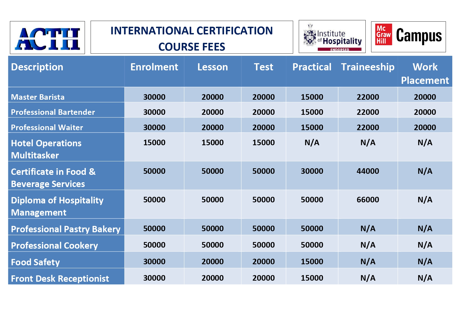 Certificate In Food & Beverage Services